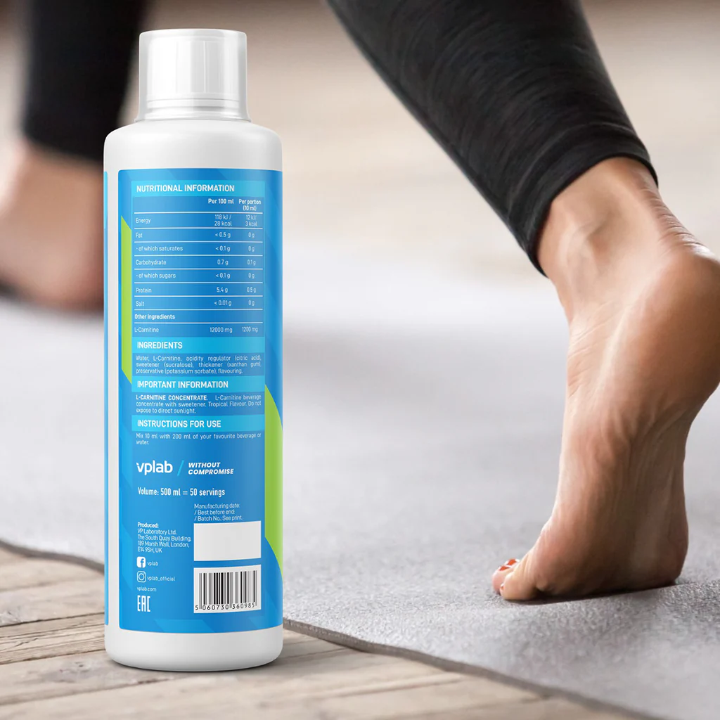 VPLab L-Carnitine Concentrate is a stimulant-free liquid L-carnitine supplement designed to support fat metabolism, enhance energy levels, and improve endurance. Each serving delivers 1200 mg of L-carnitine in a convenient liquid form, ideal for pre-workout use and active lifestyles. Available in delicious Tropical Fruit or Cherry-Blueberry flavours.