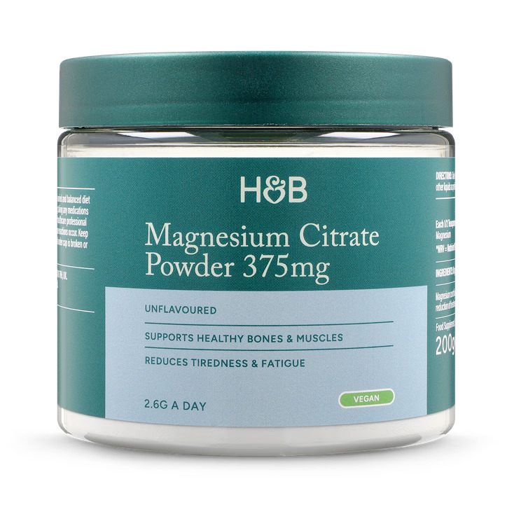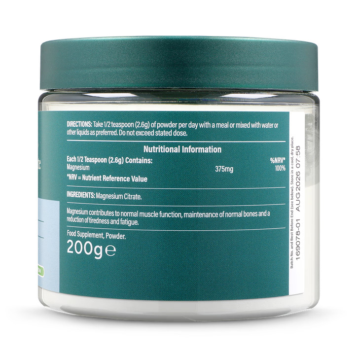 Holland & Barrett Magnesium Citrate Powder 375 mg – tai grynas magnio citratas miltelių pavidalu, skirtas palaikyti normalią raumenų ir nervų sistemos veiklą, kaulų būklę bei padėti mažinti nuovargį ir išsekimą.
