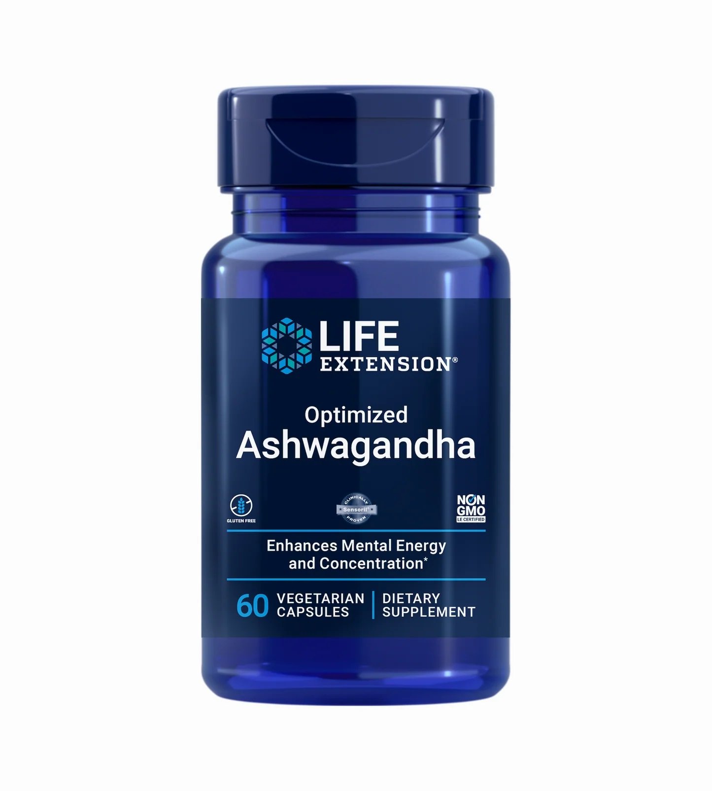 Life Extension Optimized Ashwagandha Extract suteikia 125 mg Sensoril® ašvagandos ekstrakto kiekvienoje kapsulėje, padeda valdyti stresą, palaikyti emocinę pusiausvyrą, sveiką kortizolio lygį ir bendrą gyvybingumą. Tinka vegetarams, be GMO ir be glitimo.