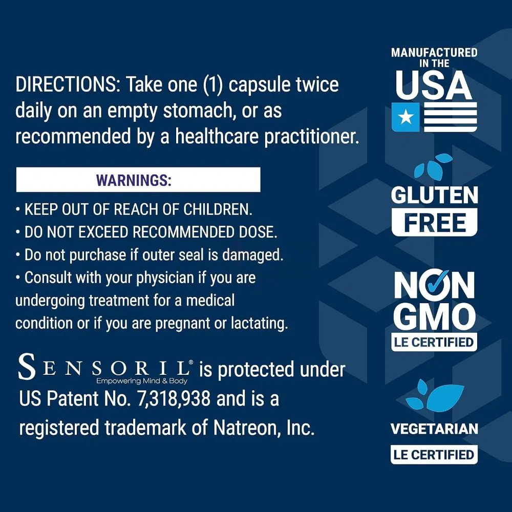 Raktažodžiai: ašvaganda, Sensoril, streso mažinimas, kortizolio kontrolė, adaptogenas, Life Extension, emocinė pusiausvyra, energija, pažinimo funkcijos, širdies sveikata, ekologiškas.