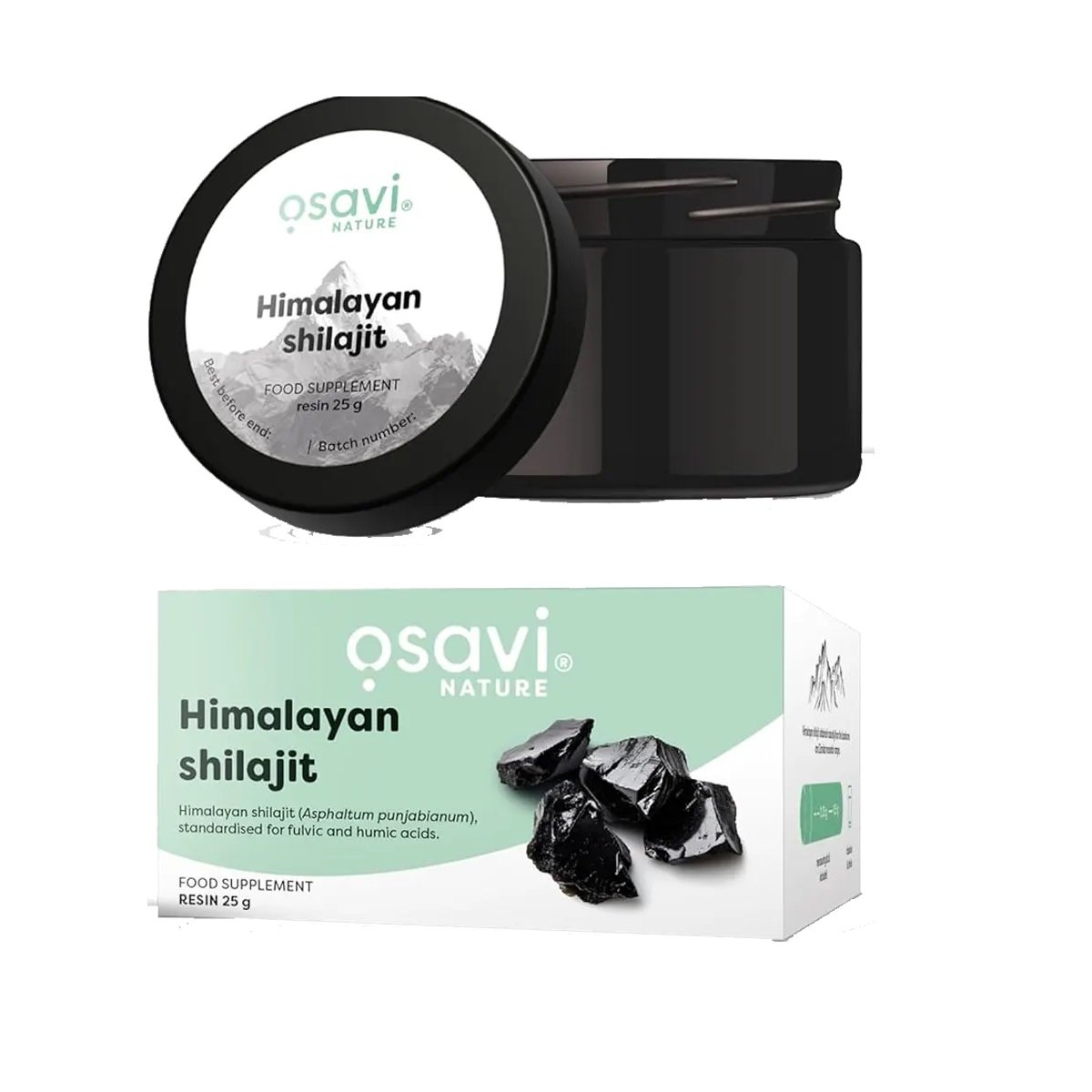 Osavi Himalajų šilajitas – 25 g natūrali derva iš Himalajų. Standartizuota pagal fulvo ir humines rūgštis. Ajurvedinis mumio organizmo gyvybingumui ir sveikatai.