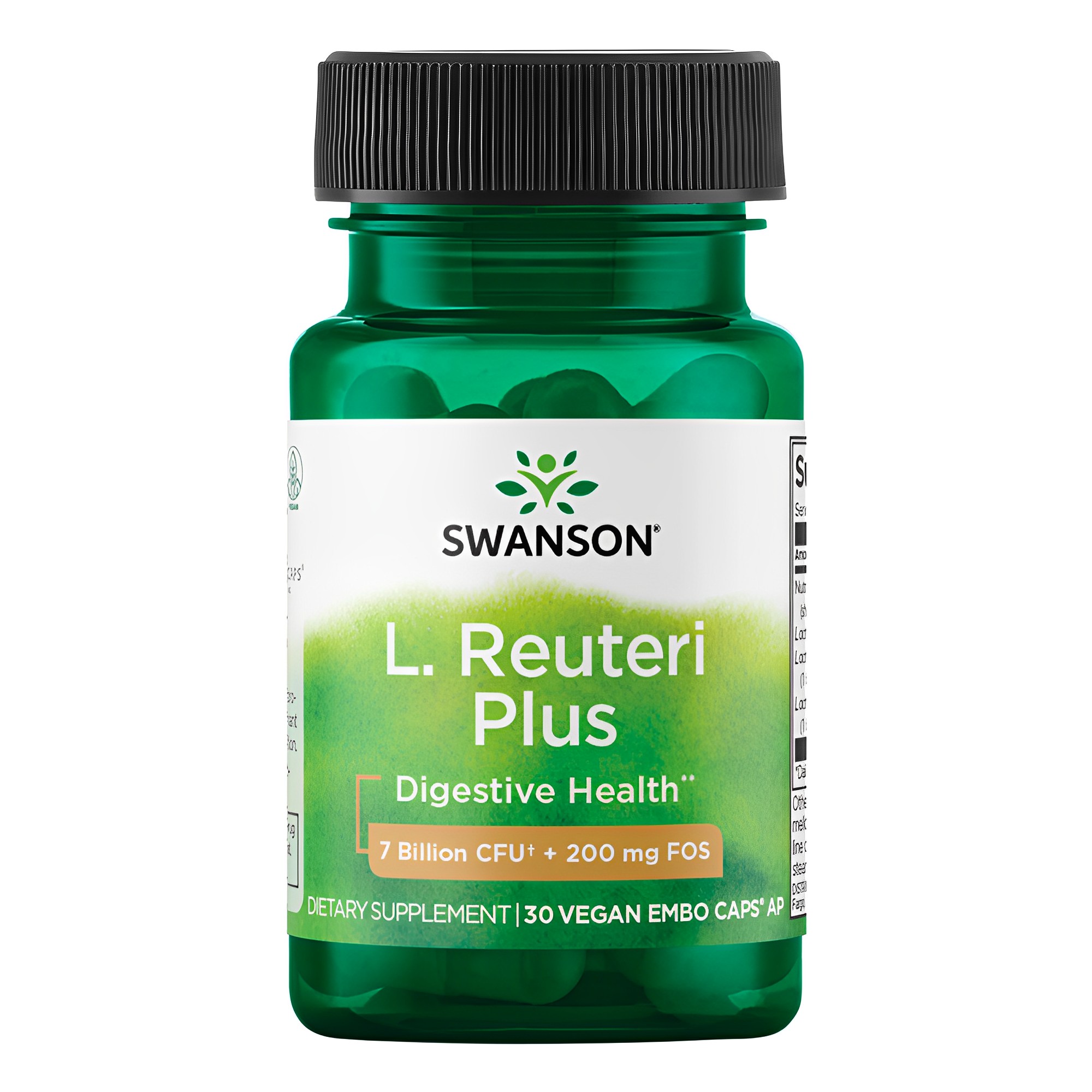 Swanson L.Reuteri Plus – tai aukštos kokybės probiotinis kompleksas, kurio sudėtyje yra unikali „Lactobacillus reuteri“ padermė, papildyta „Lactobacillus rhamnosus“ ir „Lactobacillus acidophilus“ bakterijomis bei prebiotiku NutraFlora® scFOS® (trumpųjų grandinių fruktooligosacharidai). Ši sinerginė formulė palaiko žarnyno mikrofloros balansą, skatina virškinimo sistemos veiklą ir imunitetą.