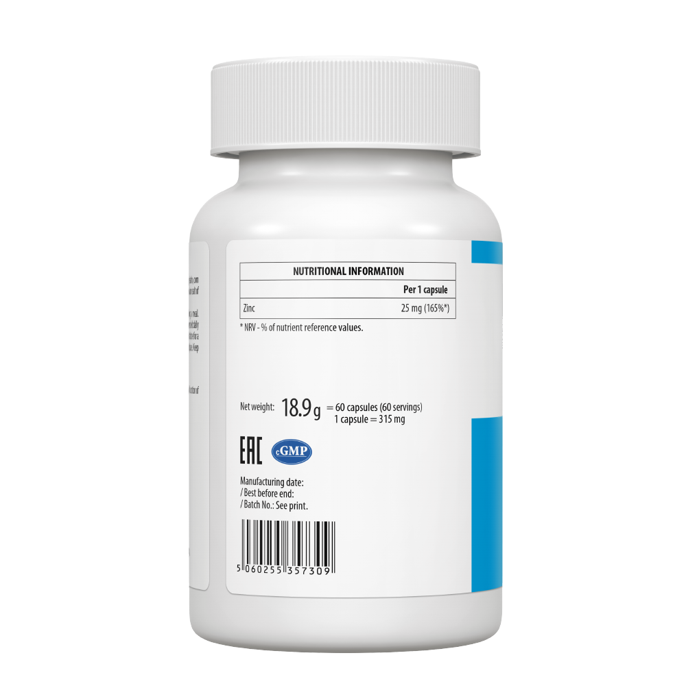 UltraVit Zinc – aukštos kokybės cinko kapsulės imuninei sistemai, odai, plaukams ir nagams. 25 mg cinko citrato vienoje kapsulėje. 60 kapsulių, be glitimo ir GMO.