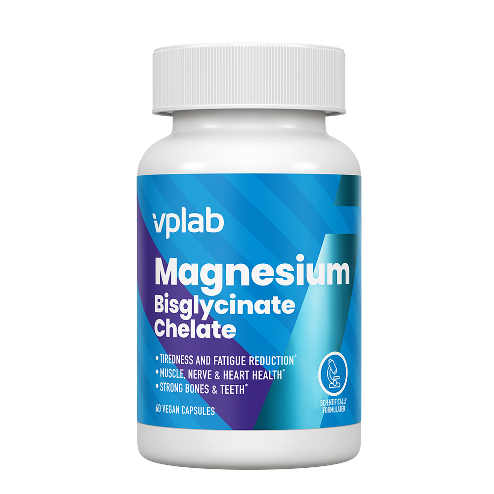 VPLab Magnesium Bisglycinate – magnio maisto papildas kapsulėmis su gerai pasisavinama bisglicinato forma. Paros porcija (2 kapsulės) suteikia 260 mg magnio, t. y. 70 % RMV. Produktas yra švelnus virškinimo sistemai, tinkamas kasdieniam vartojimui ir pateikiamas veganiškų kapsulių pavidalu.