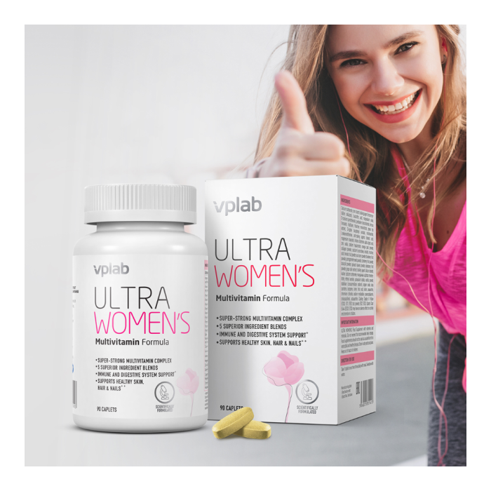 VPLab Ultra Women’s Multivitamin – išmanus kompleksas su 44 veikliosiomis medžiagomis moterų grožiui, energijai ir sąnarių sveikatai. 90 tablečių – 90 dienų pilno palaikymo kursas.